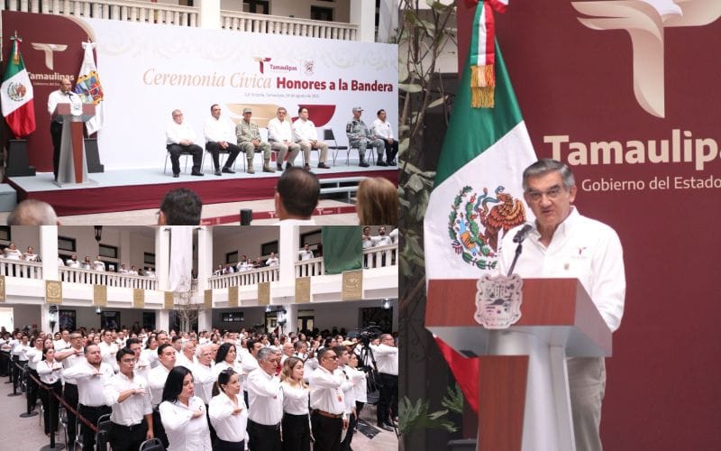 Al dar la bienvenida a la ceremonia cívica, Héctor Joel Villegas González, secretario General de Gobierno, hizo un llamado a las y los servidores públicos para seguir el ejemplo del gobernador Américo Villarreal y demostrar que “servir a Tamaulipas no es una tarea de escritorio, sino una causa que se lleva con orgullo, entrega y honestidad”.