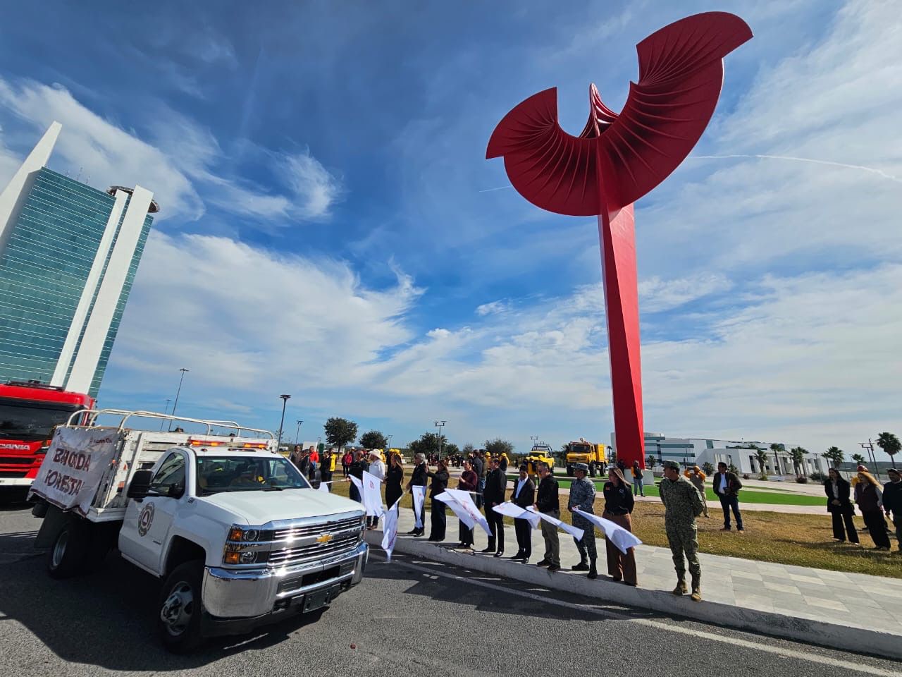 Al evento también se dieron cita Karina Lizeth Saldívar Lartigue, secretaria de Desarrollo Urbano y Medio Ambiente; Juan Antonio López Hernández, en representación del coordinador general de Protección Civil; Carlos Argueta Spínola, titular de la Promotoría de Desarrollo Forestal de la CONAFOR en Tamaulipas; Capitán Primero Juan Carlos Miguel López en representación del General de Brigada Estado Mayor, Jesús Adolfo Amparan Hernández; Horacio del Ángel Castillo, titular de la SEMARNAT en Tamaulipas, además de los alcaldes de González, El Mante, Jaumave, Tula, Soto la Marina y brigadistas.